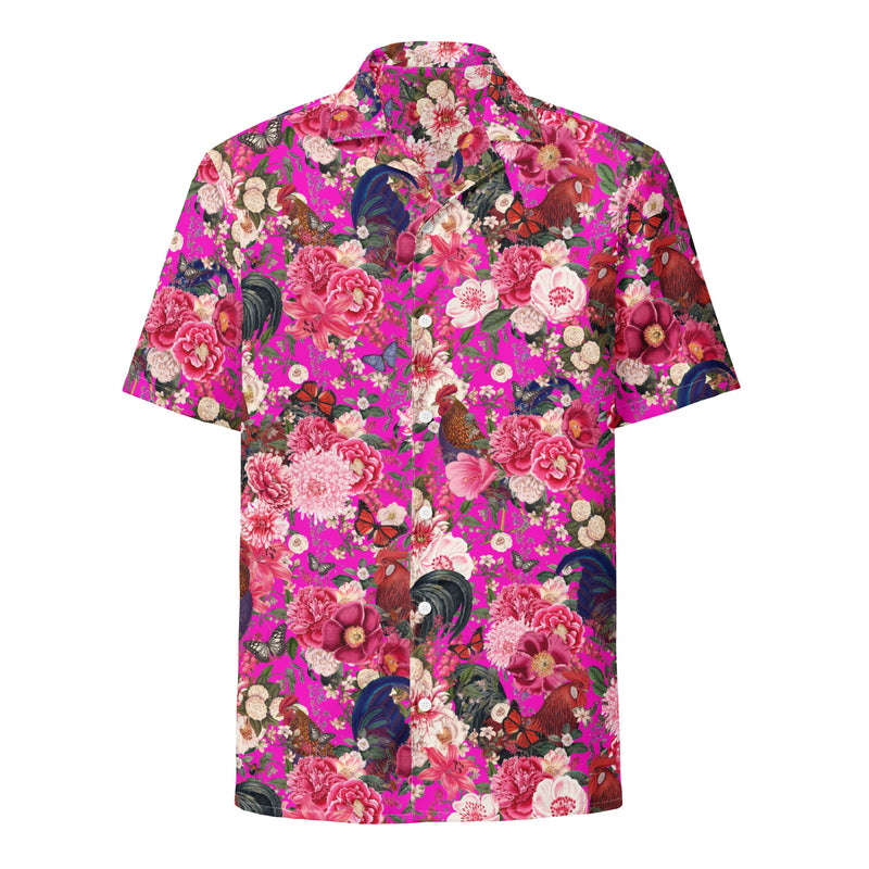 Be the coolest guy at the summer barbecue in this hot pink rooster button-down shirt. It exudes coolness both in style and in the fact that it's featherlight and moisture-wicking material ensures comfort even on the hottest days.• 65% recycled polyester, 35% polyester• Fabric weight: 2.95 oz/yd² (100 g/m²)• Breathable and moisture-wicking material• Oversized fit• UPF50+ protection• Blank product components sourced from ChinaPLEASE NOTE: This product is made especially for you as soon as you place an order, which is why it takes us a bit longer to deliver it to you. Please allow several days processing time in addition to delivery. This item may ship separately from other items in your order.International shipping is unavailable at this time.